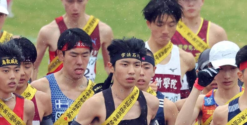 学法石川は、最長のエース区間「花の1区」(10キロ)でエースの増子陽太(3年)が28分20秒で区間賞を獲得。昨年、千葉・八千代松陰の鈴木琉胤(るい、現早大1年)がマークした日本人最高記録(28分43秒)を23秒も更新する激走で波に乗った。3区(8・1075キロ)の栗村凌(3年)も区間2位に20秒の大差をつける区間賞で独走態勢を築いた。