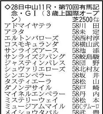 ◆第70回有馬記念・G1(12月28日、中山競馬場・芝2500メートル) 第70回有馬記念・G1は12月28日、中山競馬…