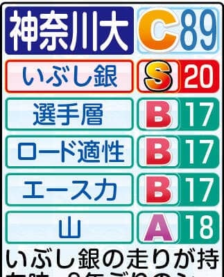 往路は酒井主将、宮本の4年生コンビの1、2区起用が有力。宮本は「2区で神奈川大記録を目指す」と15年度に前マラソン日本記録保持者のプロランナー鈴木健吾(30)が記録した1時間7分17秒の更新を狙う。復路でも指揮官が「14、15番手まで選手層はだいぶ厚みを増した」と6区有力の大岩をはじめ、誰が出ても計算が立つメンバーがそろった。