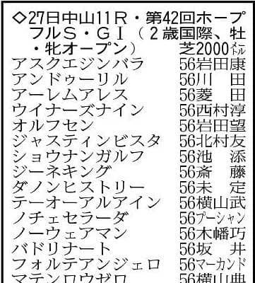 ◆第42回ホープフルS・G1(12月27日、中山競馬場・芝2000メートル)