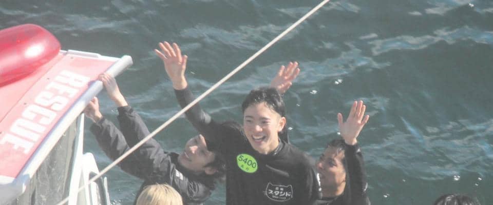 レース直後には大時計前で、滋賀支部の先輩である沢田尚也、草川壮良、広部大明らによって水面に投げ込まれる水神祭が行われ、沢田と草川は高村と一緒に水面にドボン。今節の滋賀勢は121期の沢田が最年長。好素性機を手に待望の初勝利を飾った高村は「先輩が若手ばかりなので聞きやすくて、ペラの情報交換ができた。やっぱり出足は良かったですね。早く勝ちたかったのでホッとしています。師匠の君島秀三さんには、まだまだだと言われそうだけど、いい報告ができます」とさわやかな笑顔。水神祭時には『スタンド』と書かれた文字が目立つウエアを着用して水面に投げ込まれ、レース場のスタンドのファンからも「びわこに応援に行くよ」「連勝しろよ」と遠征地での温かい祝福に感動。宮島でプロとしての第一歩を踏み出した高村に今後も注目だ。
