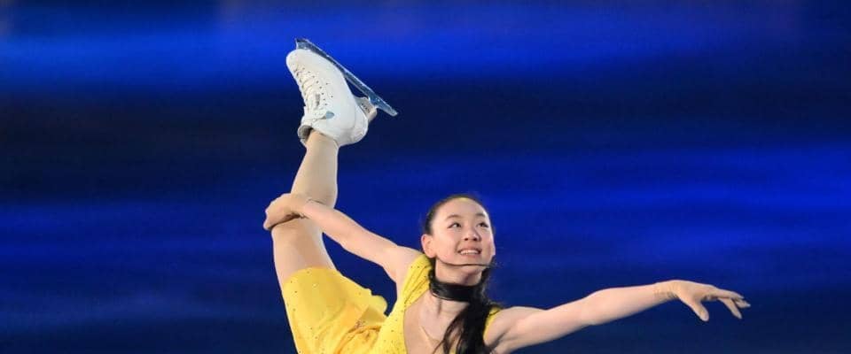 トリプルアクセルを決めるなどの好演技でジュニアながら女子6位に入った岡万佑子(16)=木下アカデミー=は、鮮やかな黄色のノースリーブ衣装で競技とは一転髪を下ろしたスタイルで登場。エキシビション演目「City of Stars」を演技。長い手足、柔軟性を生かした演技で観客を魅了した。