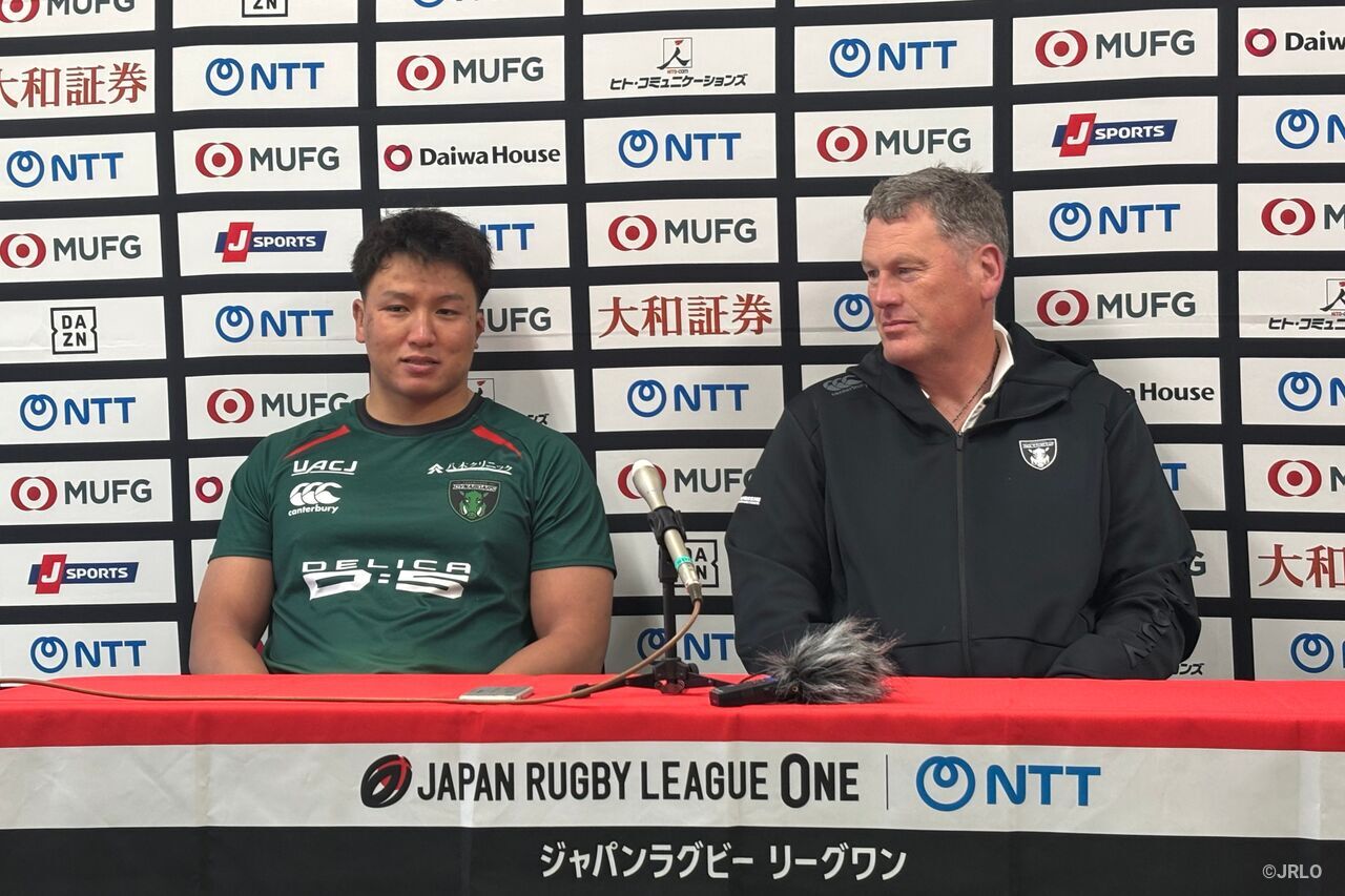 「最後は14人でうまく対応できました。もちろんフィールドには常に15人残しておきたいですが、TMO(テレビジョンマッチオフィシャル)が介入するいまのラグビーではカードが出ることも多く、それに備える必要があります。今週も誰かを欠く事態を想定して準備していました。スクラムを7人で組むのは挑戦でしたが、判断を下さなければなりませんでした。最後の5分間に見せたチームのキャラクター、情熱、粘り強さは、まさにダイナボアーズらしさであり、150年続く三菱重工業のDNAを見せることができたと思います」