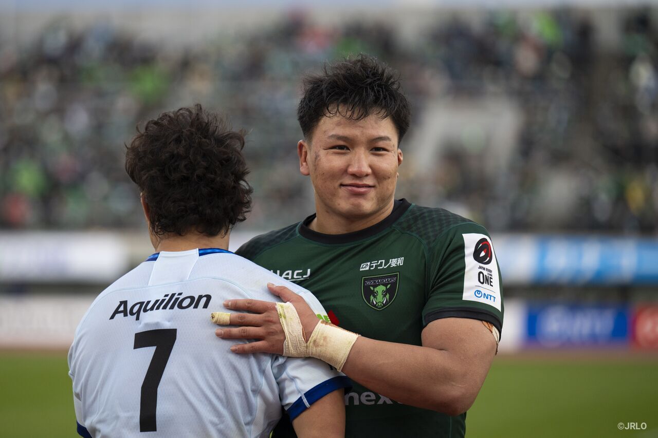 試合を動かしたのは、昨季までキャプテンとしてチームをけん引した岩村昂太だ。前半、自ら二つのトライを奪い、チームに勢いをもたらす。後半には今季キャプテンを務める吉田杏もトライ。新旧キャプテンによる得点の連鎖に、岩村は「(2回のトライキャンセルの判定を経て)3度目の正直やな、ナイス」と吉田へ歩み寄り、笑顔で声を掛けて、頭をポンと叩いた。