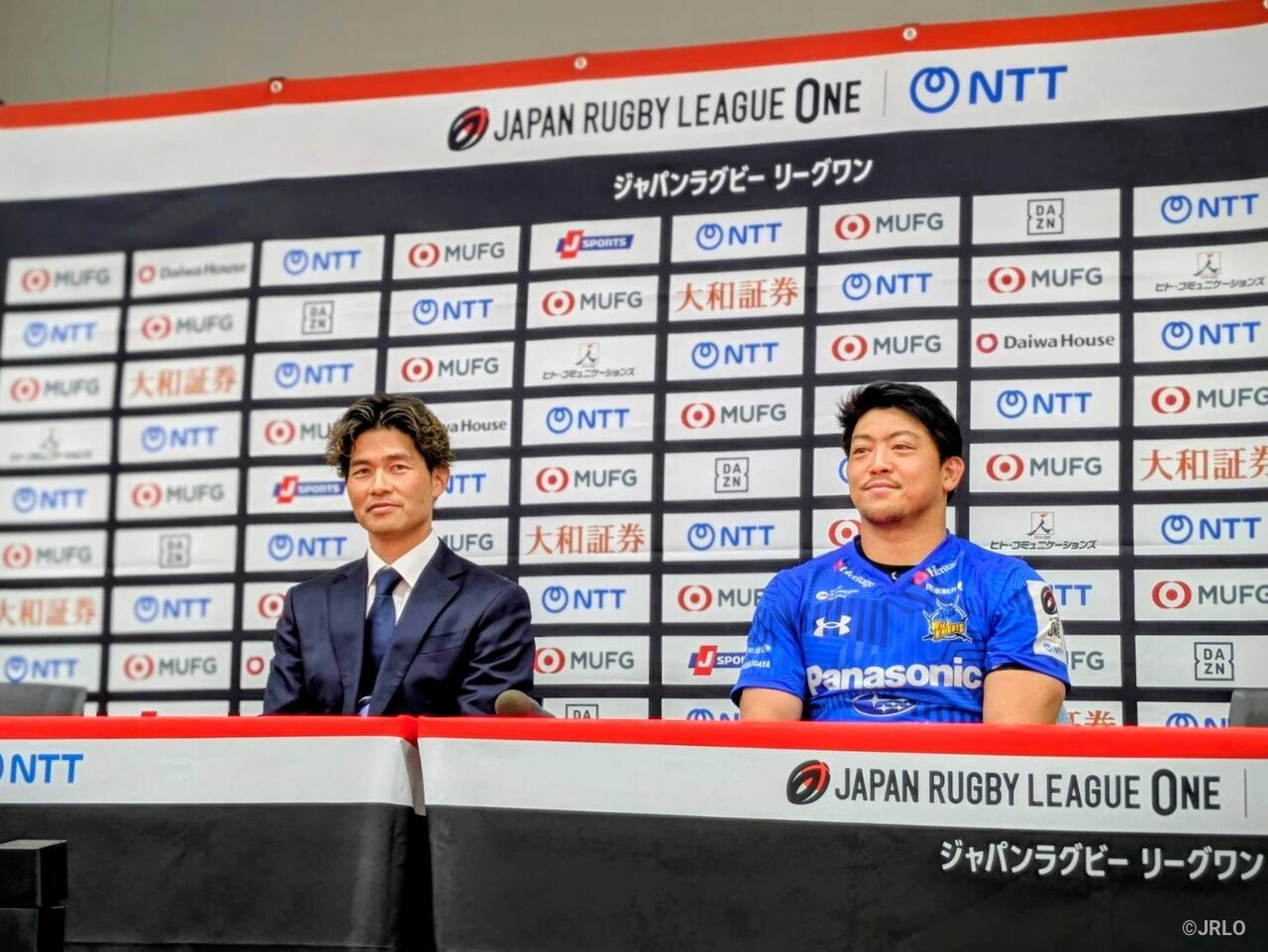 埼玉パナソニックワイルドナイツの金沢篤ヘッドコーチ(左)、坂手淳史キャプテン