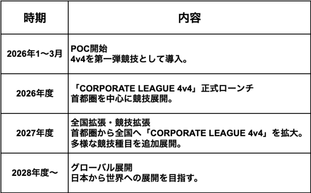 第一弾競技として採用する4v4は、短時間でも高い熱量と主体性を引き出せる競技であり、この構想を力強く立ち上げるための最適なスタートだと位置づけています。