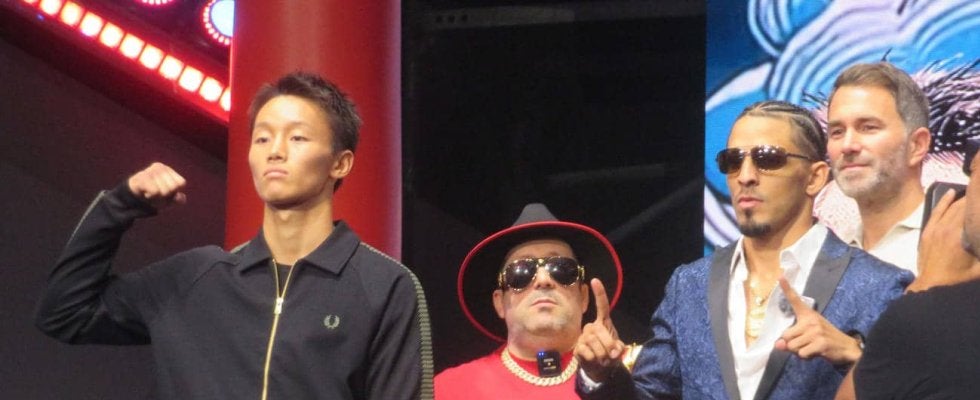 史上初の高校8冠を含むアマ10冠の前日本ライト級王者今永虎雅(大橋)は同門の先輩となる井上と同じ時間帯で練習を重ねてきた。一緒のフライト便でサウジ入り。現地調整も「マイク・タイソン・ボクシングクラブ」で体を動かした。拳を交えるWBO世界スーパーフェザー級10位エリドソン・ガルシア(ドミニカ共和国)と対面し「この大きい舞台で試合できることはすごく光栄。自分の存在をアピールできるようにしっかり勝つ。注目していただければ」と口にした。