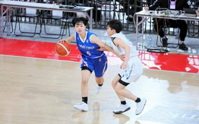 福井工大福井は、小池昌鈴、サジョ・レイの両選手が次々とシュートを決めて前半を45―40とリードして折り返すなど、インターハイ優勝の桜花学園と互角に戦った。(前多健吾)