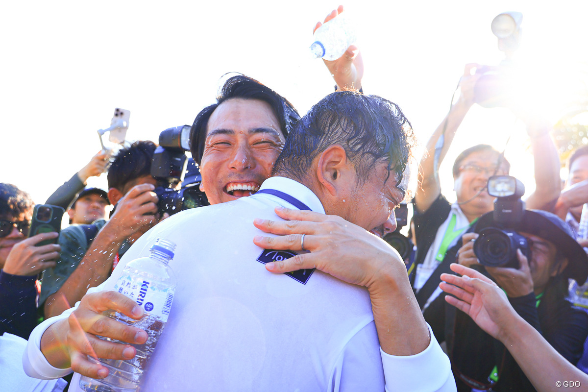 そして、優勝したのは大岩龍一プロだったから、不思議な偶然に驚いた。おまけに元々アルバイト先の先輩で、長い付き合いだというキャディさんのお名前は池宗龍さん。龍コンビで手にした初優勝を多くの仲間がウオーターシャワーで祝福した。