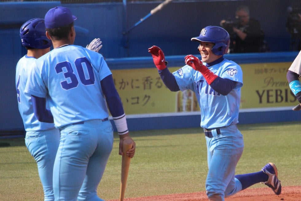 この日も1年から4年まで各学年の選手たちがスタメンに名を連ね、決勝本塁打は船山貴大内野手(3年・日大三)、4回表のファウルフライを好捕した高垣鋭次外野手(1年・智弁和歌山)、東妻を好リードした馬場龍星捕手(2年・八戸学院光星)、完封した3年の東妻が活躍した。