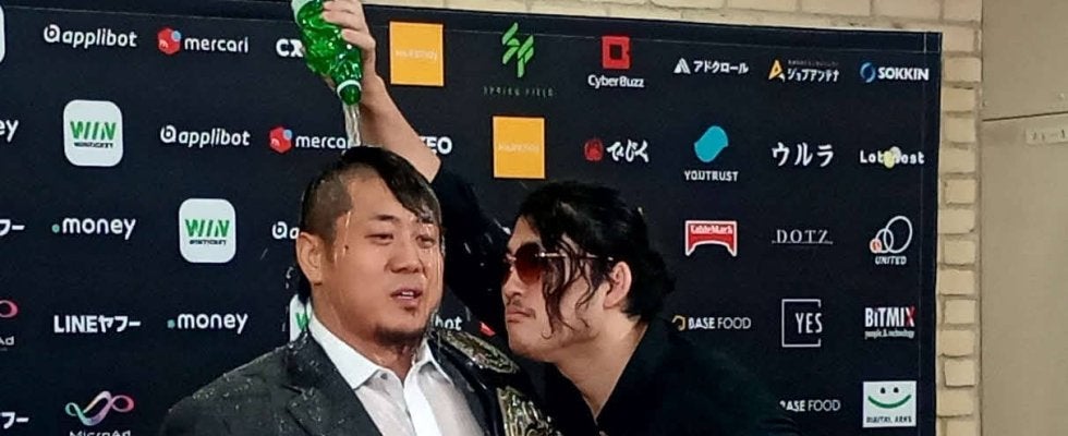 プロレスリング・ノアは26日、来年元日の日本武道館大会「NOAH“ THE NEW YEAR”」に向けた記者会見を都内で開催。GHCヘビー級王者のYoshiki Inamura(稲村愛輝、33)が、挑戦者のOZAWA(29)に頭から水をかけられてブチ切れた。