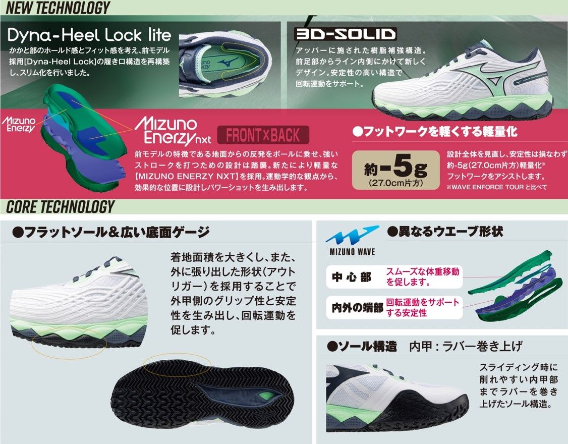 「試合の最後まで強いストロークを打ち続ける」設計を追求したシューズ、「ウエーブエンフォースツアー2」に新色が登場する。