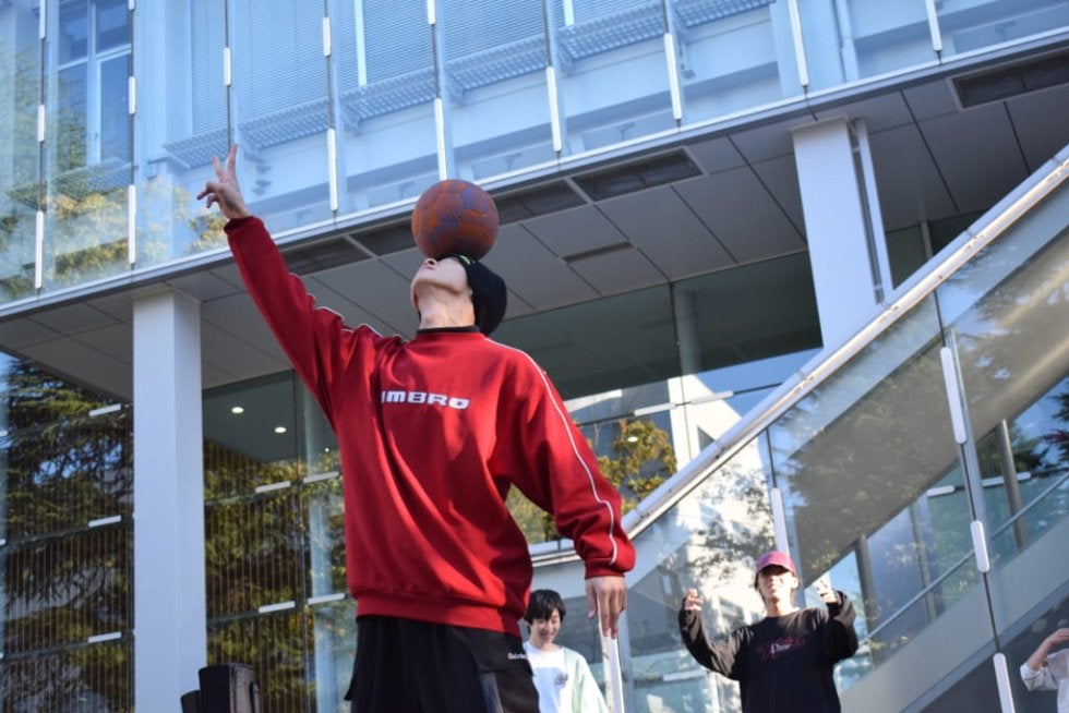 田邉:明治大学の公認サークルで、フリースタイルフットボールサークルです。フリースタイルバスケットボールのプレイヤーも所属しています。多分歴史も含めて日本で一番でかいフリースタイルサークルなんじゃないかと思いますね。