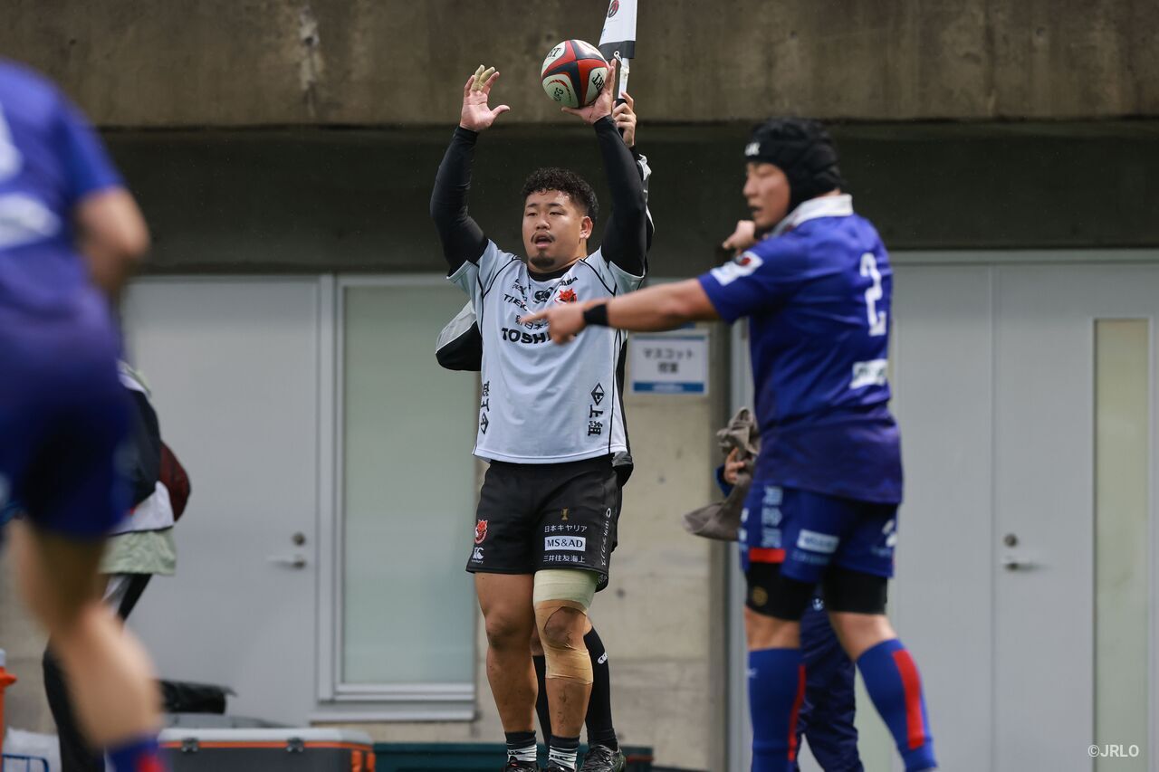 前節の静岡ブルーレヴズ(以下、静岡BR)戦は雨中の激闘となり、26対22で今季初勝利をつかんだ。急きょ先発出場となった酒木凜平は攻守に奮闘し、試合の流れを引き寄せた。