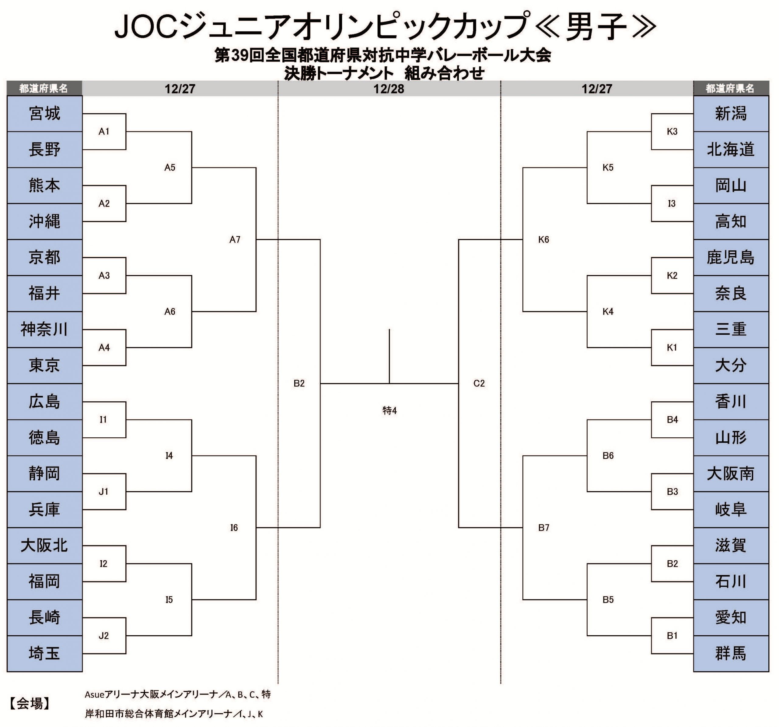 JOCジュニアオリンピックカップ第39回全国都道府県対抗中学大会男子決勝トーナメント表