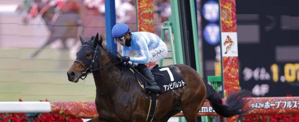 12月27日、中山競馬場で行われた9R・ベストウィッシュカップ(3歳上2勝クラス・芝1200m)は、石川裕紀人騎乗の7番人気、アンビバレント(牡5・栗東・藤野健太)が快勝した。4馬身差の2着にスムースベルベット(牝5・美浦・南田美知雄)、3着にタマカヅラ(牝3・美浦・斎藤誠)が入った。勝ちタイムは1:07.8(良)。