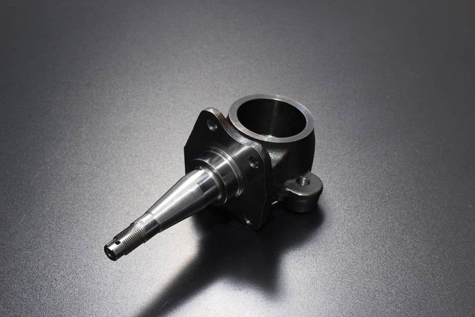 テイン自社製のトヨタセリカ(ST205)用スーパーストラットと、AE86 用スピンドルを展示。新型車だけでなく、旧車やネオクラシックといった往年の名車に対応するアイテムも展開しています。実物はブースにて!