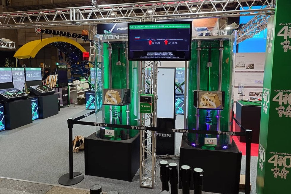 展示品が動く! ダンパーに搭載されている機構や、起きる現象を再現したデモ展示機を設置します! TEIN独自の機構であるハイドロバンプストッパー(H.B.S.)の効果がわかるデモ展示機や、キャビテーション発生時のダンパー内部の様子がわかるデモ展示機があります。搭載された機構にはどのような効果があるのか、ダンパーの内部では何が起きるのかを、ぜひご覧ください。