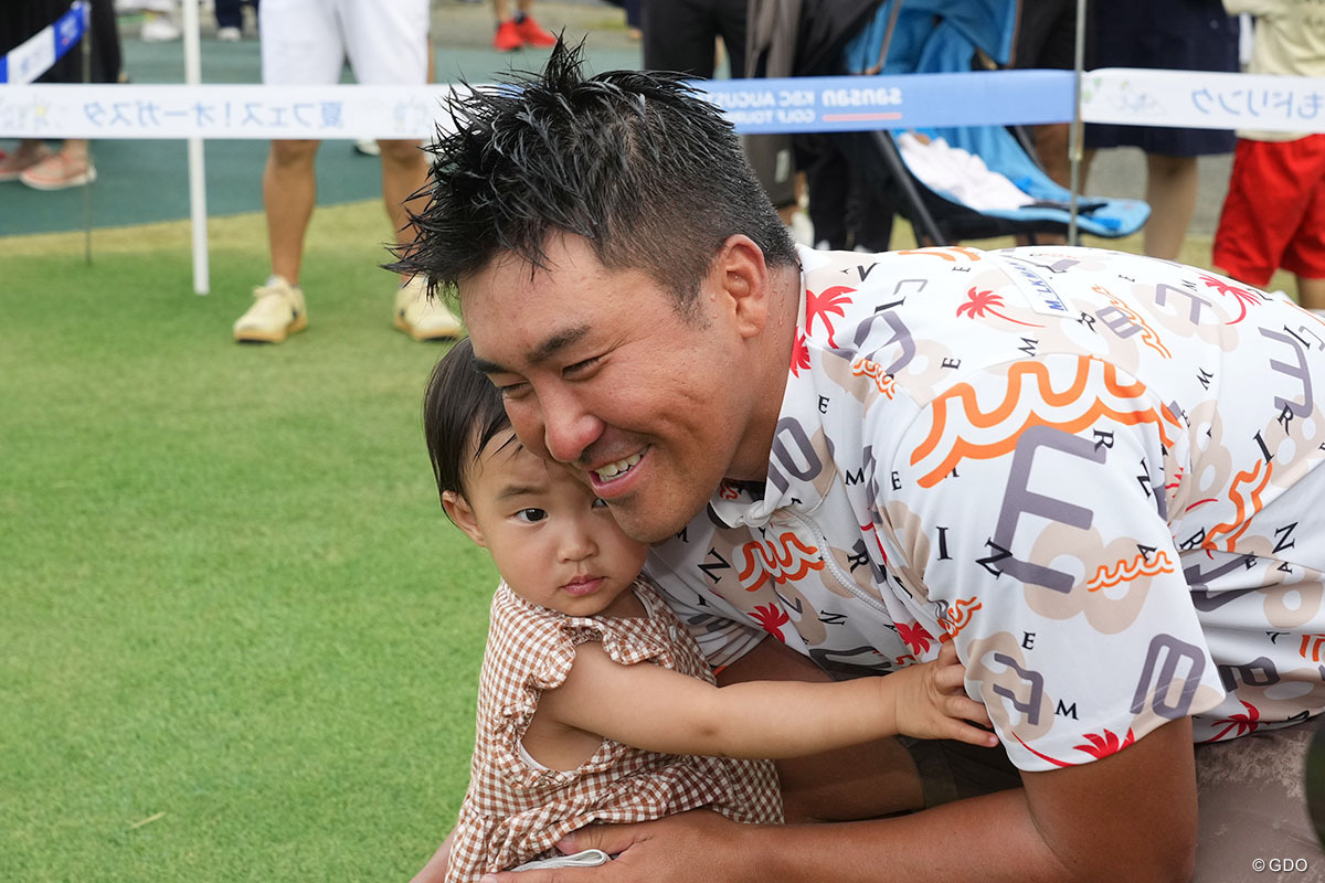 昨年大会は香妻陣一朗とのプレーオフで敗れた小斉平優和が、リベンジを果たして初優勝をつかみとった。腕に抱く愛娘の和暖(よりは)ちゃんに向けられた、満面の笑顔。「僕が優勝したら、抱きかかえるっていう夢があったので」。27歳の父として、夢をかなえた瞬間だった。