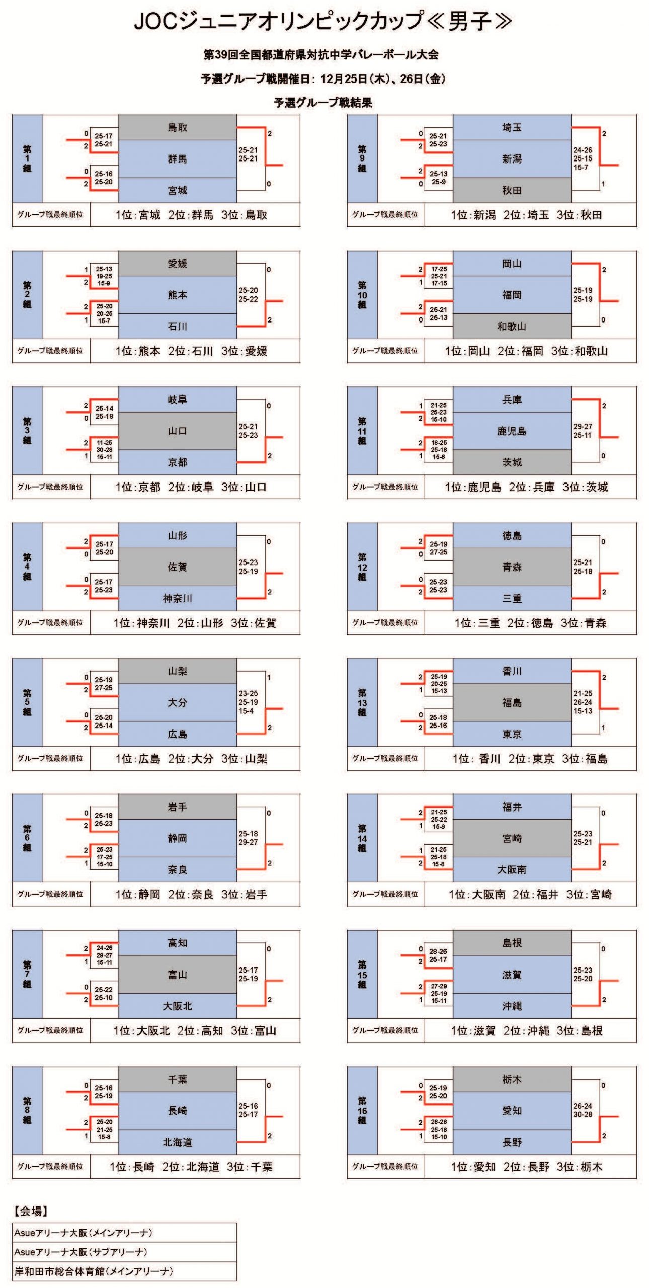 JOCジュニアオリンピックカップ第39回全国都道府県対抗中学大会男子予選グループ戦結果
