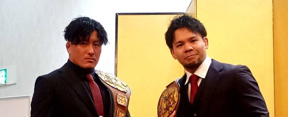 全日本プロレスは28日、都内でファンを集めた公開記者会見を開催。大みそかの代々木第二体育館大会で行われるアジアタッグ王座戦に臨む王者組MUSASHI(35)&吉岡世起(37)が出席した。