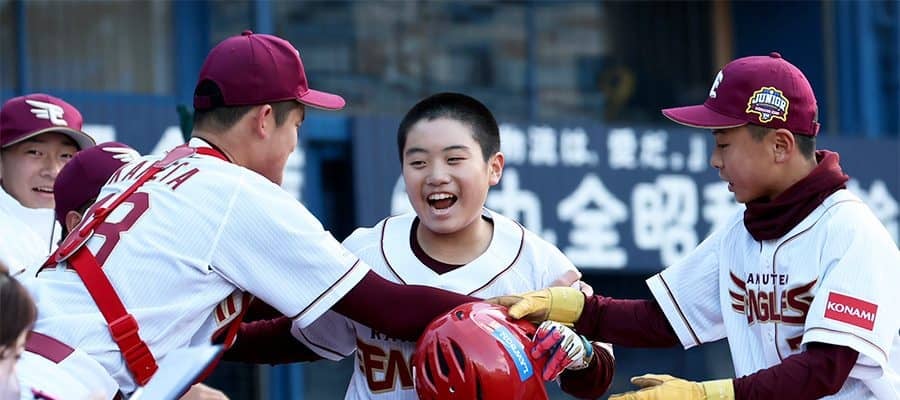 元プロ野球選手の監督のアドバイスを受け、打撃が確固たる武器になった。NPB12球団などが小学生のジュニアチームを結成して日本一の座を争う「NPBジュニアトーナメント KONAMI CUP 2025」に出場した東北楽天ゴールデンイーグルスジュニアは、初日の26日に行われた四国アイランドリーグplusジュニア戦(横浜スタジアム)で大量得点し、9-4と快勝した。打撃力が課題だったチームだが、口火を切ったのは正捕手・七戸陽向(しちのへ・ひな)選手(6年=青森・野内ヤンキース)のバットだった。