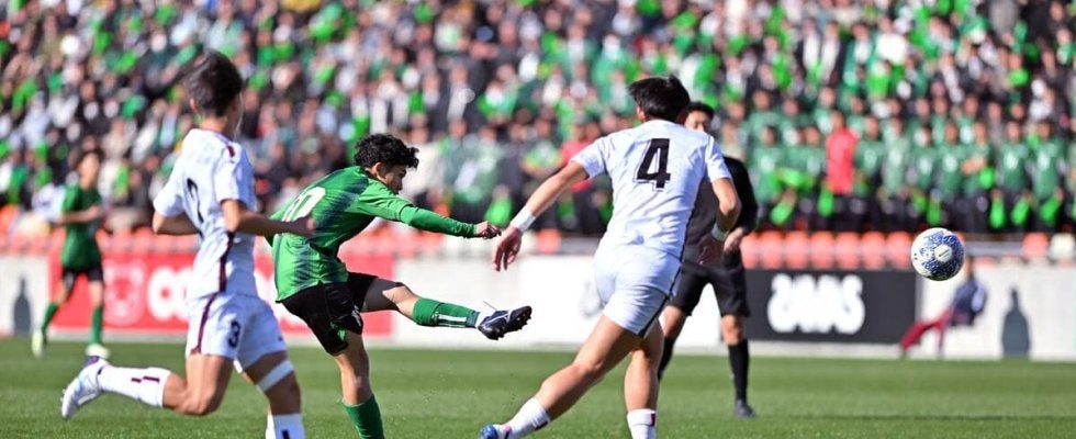 前半7分、J2湘南内定のMF山口豪太(3年)がペナルティーエリア外から左足でシュートを放ち、サイドネットを揺らして先制点。「自分の思ってるコースに振り抜けました」と喜んだ。