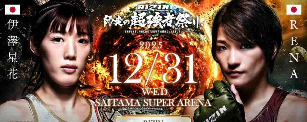 RIZIN女子スーパーアトム級王者の伊澤星花が12月31日、さいたまスーパーアリーナで開催された「RIZIN師走の超強者祭り」でRENAを下し、3度目の王座防衛に成功した。2ラウンドにギロチンチョークで一本勝ち。無敗記録を18連勝に伸ばした。