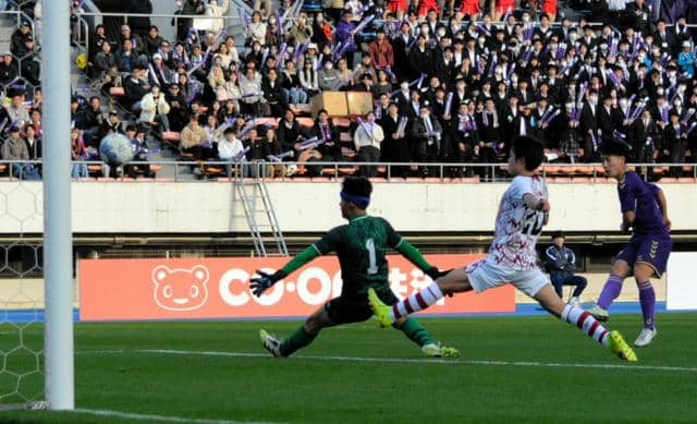 序盤は相手の積極的な守備によりオフサイドを連発したが、前半23分、相手ゴール前で得たフリーキックの好機に前回大会の得点王の三鴨奏太主将(3年)が地をはう右足シュートを決めると、チーム全体の硬さもほぐれた。左右のサイドライン際に張った味方に徹底的にボールを散らす展開力に、相手選手の体力も奪われ、後半のゴールラッシュへとつながっていった。