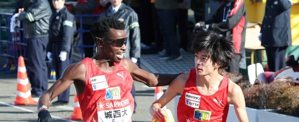 城西大のビクター・キムタイ(4年)が花の2区でトップに躍り出た。たすきを23秒差の6位で受け、一気にまくる展開に「キムタイ」がX(旧ツイッター)でトレンド入り。1時間5分9秒(速報値)で区間記録を22秒も更新した。