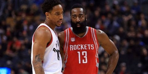 NBA選手になることにあこがれた2人の少年ラプターズのデマー・デローザンは、ロケッツのジェームズ・ハーデンにまだ髭が生え…