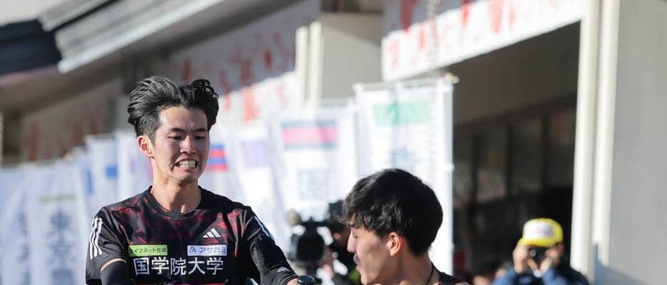 国学院大の高山豪起(4年)は7区で1時間54秒(速報値)を記録し、2位でタスキをつないだ。