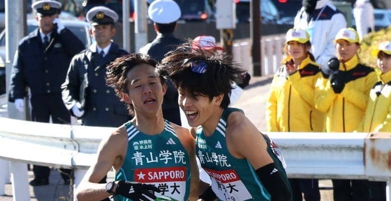 首位の青学大は、9区で佐藤有一(4年)が歴代3位の1時間7分38秒の快走で2位との差を広げ、アンカー折田壮太(2年)にタスキを繋ぎ、総合3連覇に王手を懸けた。