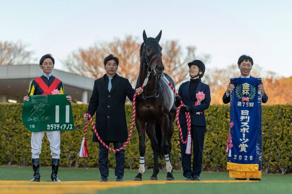 1月4日、中山競馬場で行われた11R・中山金杯(G3・4歳上オープン・ハンデ・芝2000m)は、津村明秀騎乗の7番人気、カラマティアノス(牡4・美浦・奥村武)が勝利した。ハナ差の2着に1番人気のアンゴラブラック(牝5・美浦・尾関知人)、3着に4番人気のグランディア(せん7・栗東・中内田充正)が入った。勝ちタイムは2:00.3(良)。