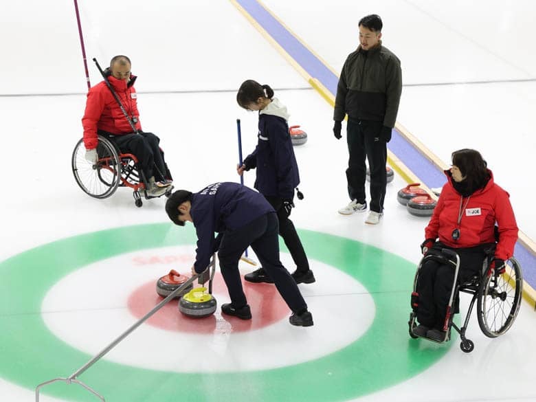 2日間、3シートで次々と試合が組まれた今回の壮行試合は、車いすの選手だけではなく、健常のカーラーにとっても学びの機会になったという。ジュニアスクールで練習に励み、ユースオリンピックを目指す、中学生の青山瑛太さんは“チーム中島”と対戦し、「ドローが決まっていてうまく試合を作っていたところは勉強になった。世界で活躍している選手と対戦できて貴重な経験だった」と話す。ペアの藏本千花さんも「ガードもすごかった。めちゃくちゃ楽しかったです」と笑顔で語った。