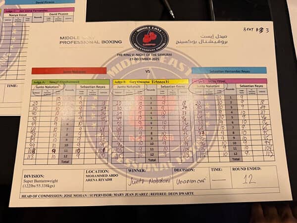 2025年12月27日、中谷潤人(M.T)はサウジアラビア・リヤドのリングで、セバスチャン・エルナンデス(メキシコ)を判定で下した。ジャッジの採点は115-113が2名、残る1名が118-110であった。3-0ではあるが、2026年5月に"モンスター"井上尚弥との頂上対決を控える中谷にとって、克服すべき点がいくつも見える一戦となった。