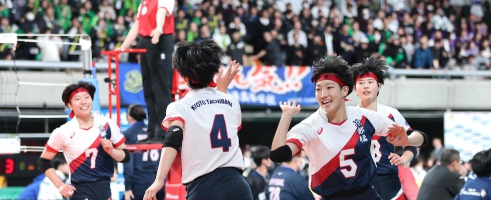 「ジャパネット杯 春の高校バレー」として行われるJVA第78回全日本バレーボール高等学校選手権大会は5日、女子1回戦で京都橘が豊川(愛知)にストレート勝ちした。