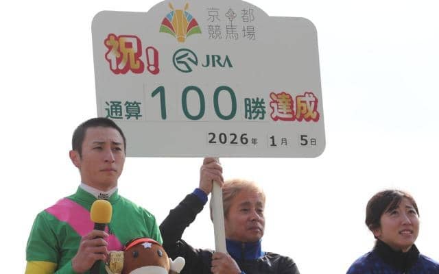 5日、京都競馬場5Rで行われた3歳未勝利(3歳・未勝利・芝2000m)で、1番人気タガノアルトゥーラ(牡3、栗東・長谷川浩大厩舎)が第1着となり、吉村誠之助騎手(栗東・清水久詞厩舎)はJRA通算100勝を達成した。