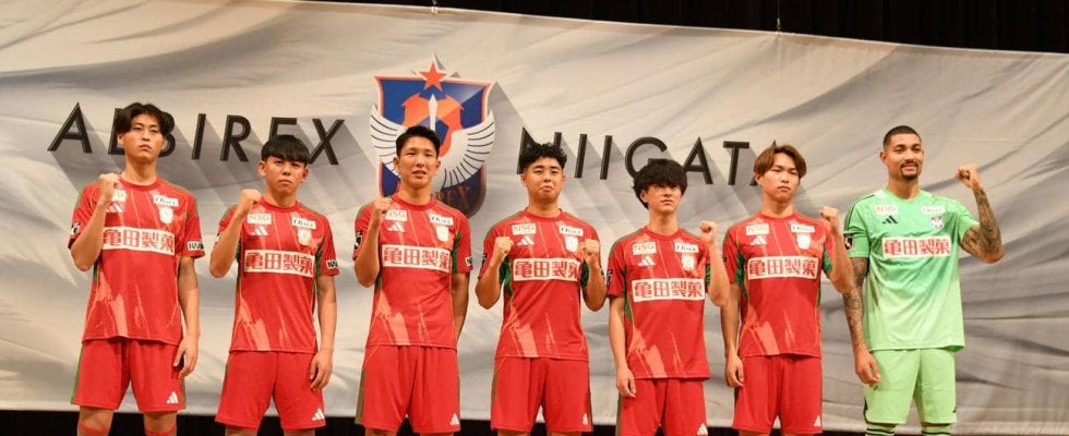 J2アルビレックス新潟の新体制発表会見が6日、新潟市の新潟テルサで行われた。高卒ルーキーのDF松岡敏也(18、興国)が早期のJリーグデビューを誓った。