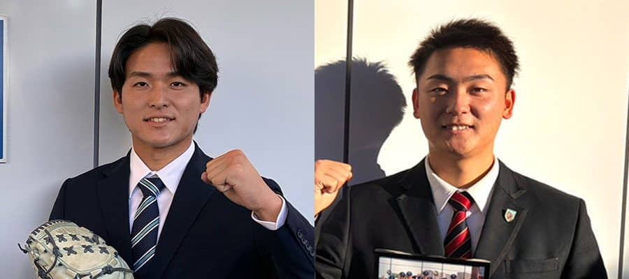 今岡は「まずは環境に慣れることが大事。すごくいい環境で野球ができるので、しっかり自分の技術を上げながら、課題と向き合っていきたいと思います」と語ると、平口は「こういう環境にきてどれだけ成長するのか楽しみです。ないものがないというか、これでうまくならなければダメだなという感じです」と、プロの練習施設を見て決意を新たにした。