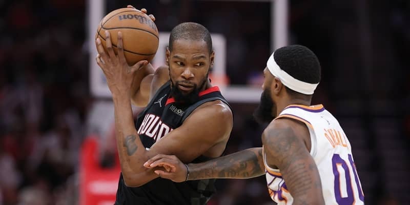 それでも、ロケッツはそこからサンズを無得点に抑え込み、残り1分59秒でトンプソンの3ポイントプレーで同点に追いつくと、タイムアウト明けのプレーで残り1.1秒にデュラントが決勝弾となる3ポイントシュートを放り込み、最終スコア100-97でロケッツが勝利。