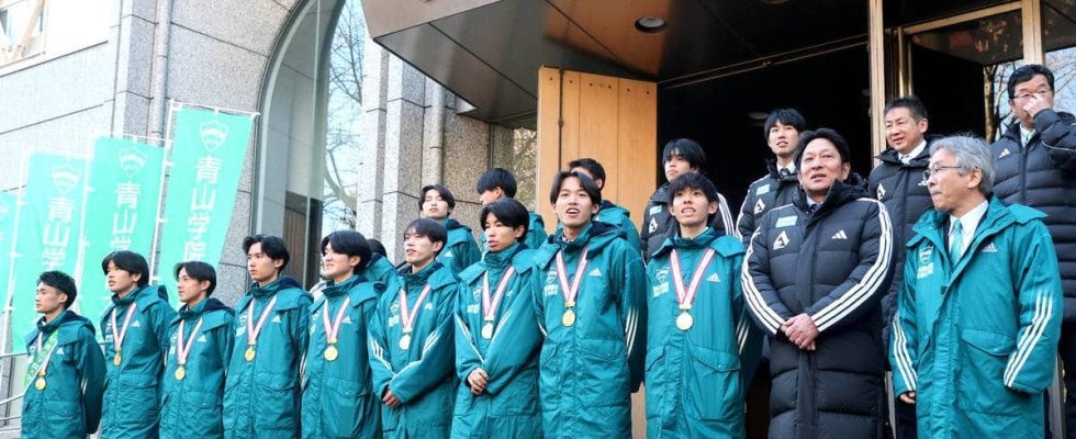 第102回箱根駅伝(1月2、3日)で往路、復路、総合のトリプル新記録で史上初の同一チーム2度目の3連覇(計9度目)を達成した青学大が8日、東京・渋谷区青山キャンパスのガウチャー記念礼拝堂前で優勝報告会を開催した。