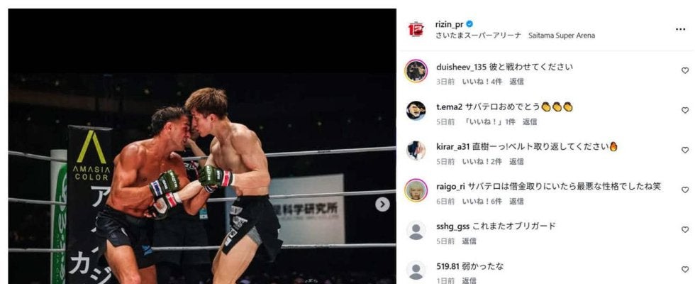 RIZIN公式インスタグラムに掲載されたサバテロVS井上の試合のコメント欄に“キルギス・フィニッシャー”“ザ・モーター”の異名を取るイリスケルディ・ドゥイシェフ(24=キルギス)が「彼と戦わせてください」と書き込んだ。
