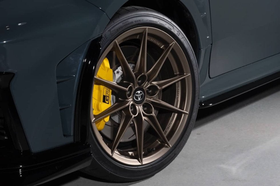 ・モリゾウこだわりの専用外板色「グラベルカーキ」、ブレーキキャリパーやインテリアの差し色にはモリゾウのシグネチャーカラーであるイエローを採用