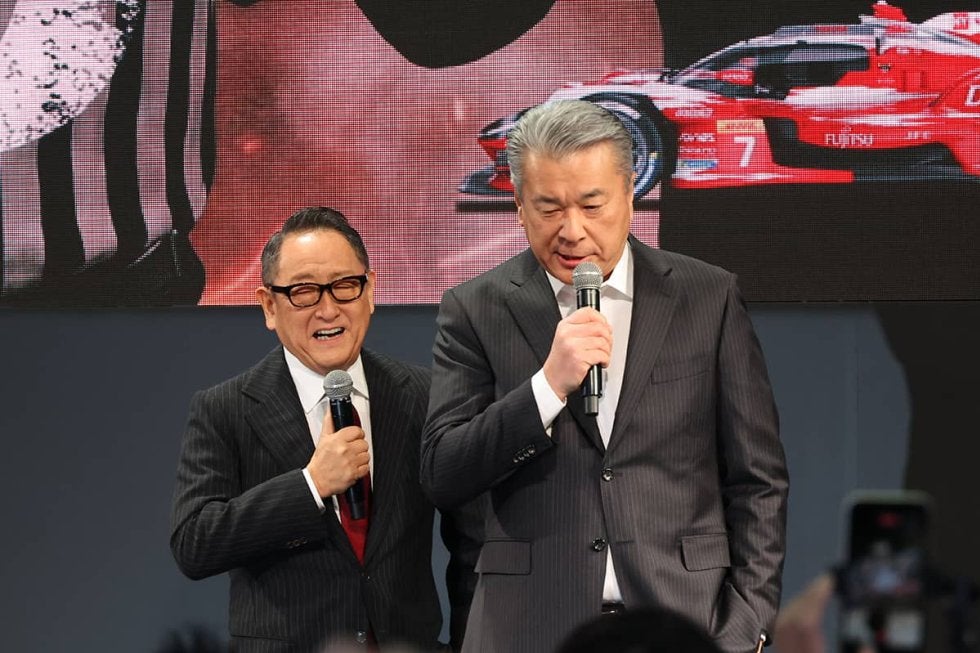 1月9日に千葉県の幕張メッセで開幕した東京オートサロン。この日の午前は、主要メーカーのカンファレンスが相次いで予定されているが、先陣を切ったのがTOYOTA GAZOO Racing(TGR)。会場内のTGRブースで「TOYOTA GAZOO Racing プレスカンファレンス」を実施し、トヨタ自動車代表取締役会長の豊田章男が“モリゾウ”として、代表取締役副社長執行役員中嶋裕樹が“ジャイアーノ”として登壇した。