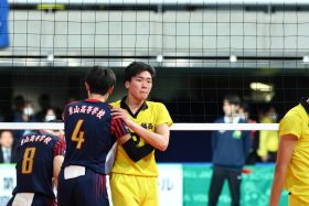 準々決勝に向けて、選手たちにそうハッパをかけた豊田監督。その言葉どおり、チームの代名詞でもある全体の守備力の高さで相手のオフェンスをはね返し、攻めては岩田を中心にして得点をもぎとる。そのなかでも第2セット、ジュースにもつれた終盤では岩田と鎮西高の一ノ瀬漣という2年生エースどうしが打ち合いを演じた。