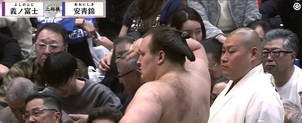 これまで幕内で2回対戦し2連敗と負け続けていた義ノ富士。共に新世代の期待の若手同士だったが、この日は安青錦が大関らしく一枚上手の相撲内容を披露。立ち合い低い姿勢で当たっていった安青錦。突き起こしてくる義ノ富士に攻め込まれ、土俵際まで追い込まれるも、足を駆使した左からの首投げで見事に相手を裏返した。行司軍配は安青錦に上がったが決着の際、安青錦は先に左手をついており、物言いがつく展開となった。