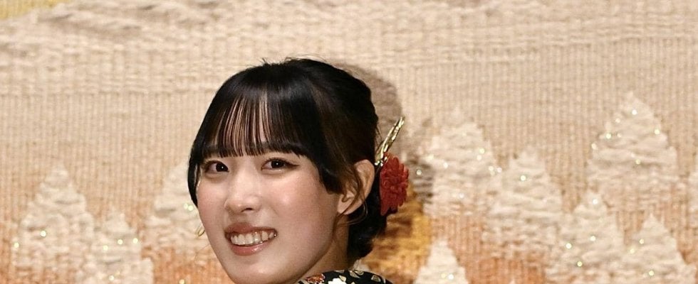黒と金の振り袖を披露。袖に紅葉や雲、帯には不死鳥の絵が描かれており「すごく立派な着物だし、帯もすごくきれい。袖の絵が特に。すごくキラキラしている」。衣装に合わせ、赤、金、黒の3色のネイルを塗った。代表者スピーチでは集まった同い年の前で「世界に挑戦し続けるプロゴルファーでありたい」と宣言した。