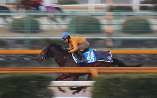 時計は6F80.8〜5F66.0〜4F51.0〜3F36.0〜2F22.4秒〜1F10.9秒。さすがにラスト1F10秒台は自己ベストであり、本当に素晴らしい動きだった。追い切りで着用していたチークピーシズについては「レースでも着けるつもりです」と高柳大輔調教師。
