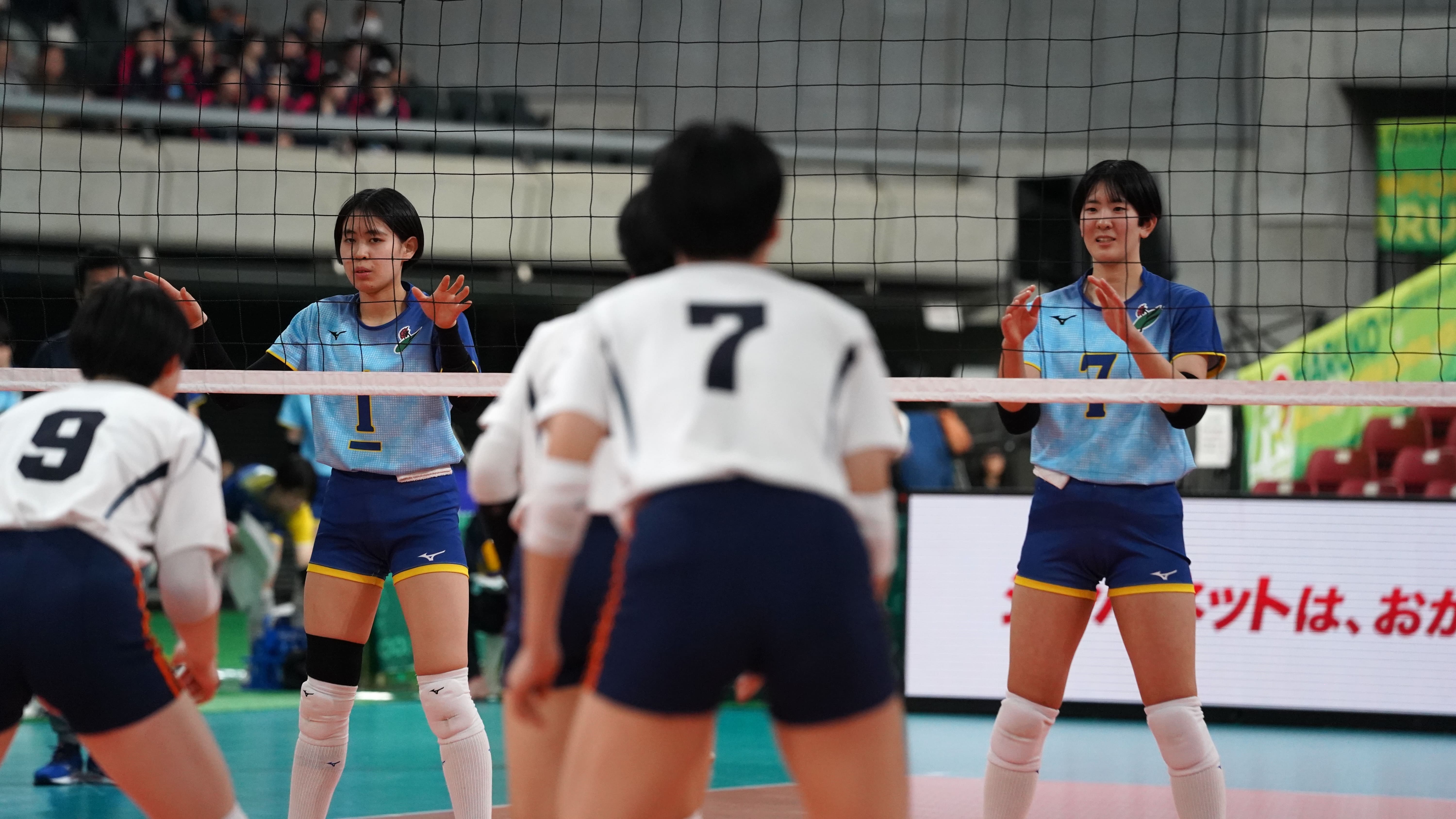 序盤から長いラリーが続く展開の中、就実がストレートで勝利し決勝進出を果たした。